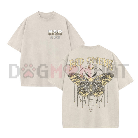 Bad Omens Moth Graphic Tee – Distressed Vintage Washed Metalcore Shirt