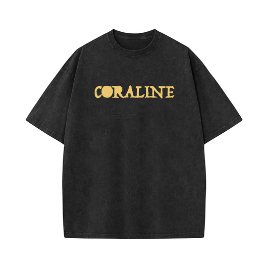 Coraline Retro Vintage Unisex Acid Washed Heavyweight Cotton T-Shirt