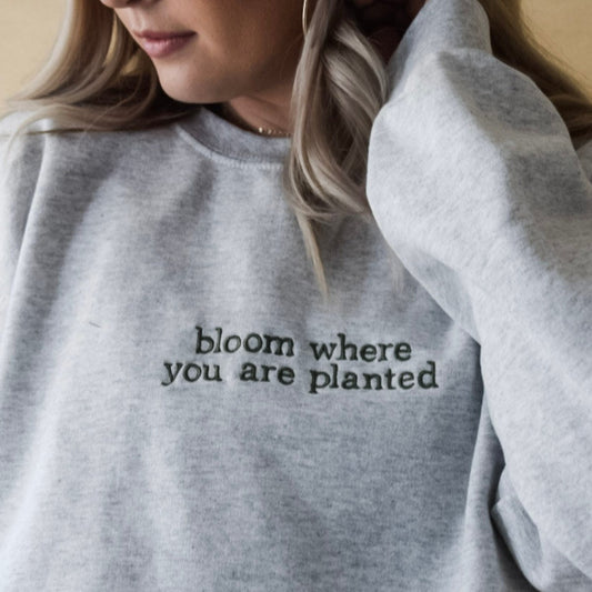 Custom Bloom Where You Are Planted Embroidered Crewneck Sweatshirt & Hoodie, Unique Gift for Friends