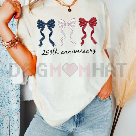 America 250 Stars and Stripes Bow T-Shirt – Coquette Patriotic Graphic Tee