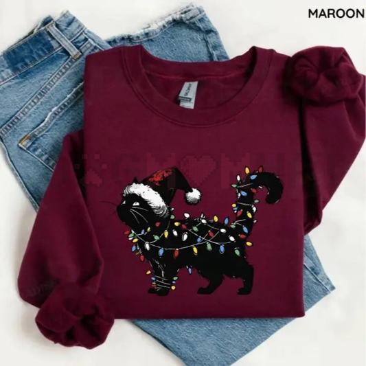 Cute Cat Christmas Sweatshirt – Retro Winter Vibes Gildan Crewneck | Cat Mom Gift