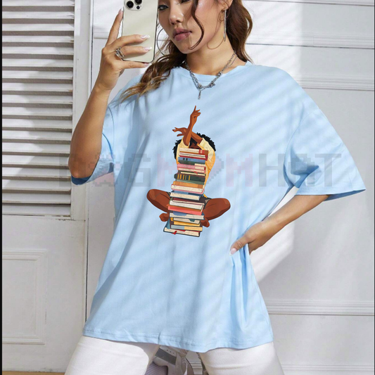 Black Woman And Books Stack Afro Girl Book Lover T-Shirt – Unisex Reading Graphic Tee