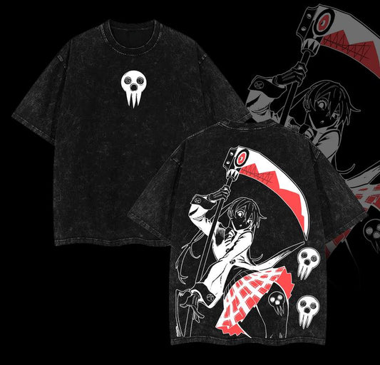 Maka Albarn x Soul Eater Anime Double Printed Vintage Washed Oversize T-Shirt