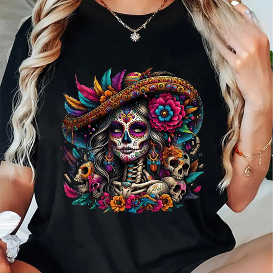La Catrina T-Shirt - Unisex Día de Muertos Sugar Skull Tee, Elegant Day of the Dead Women's Graphic