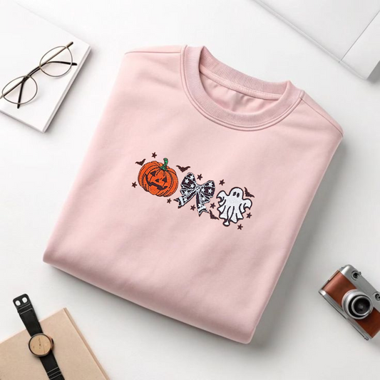 Embroidered Halloween Ghosts & Cats Sweatshirt – Cozy Fall Crewneck for Spooky Season Style