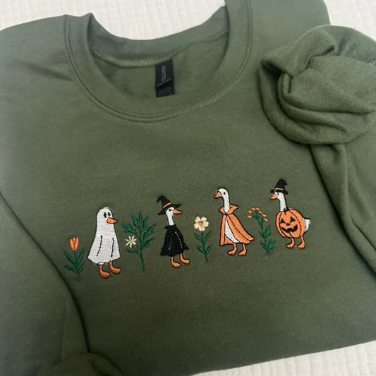 Spooky Goose Halloween Embroidered Sweatshirt - Spooky Season Apparel