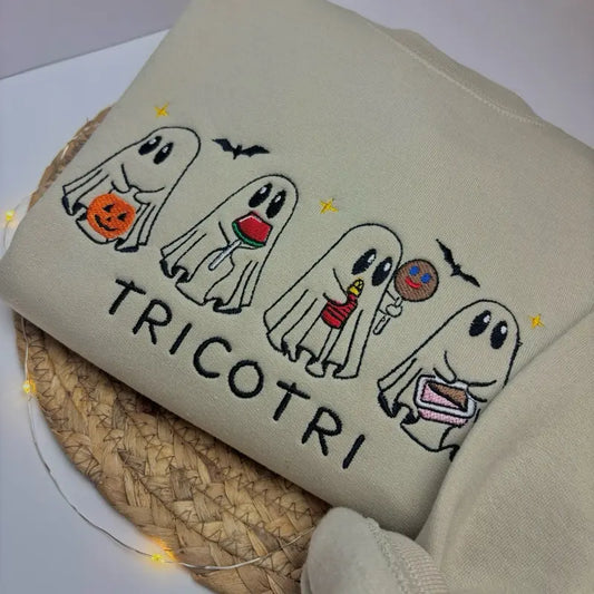 Tricotri Mexican Ghost Crewneck Sweatshirt – Spooky Embroidered Sweater, Halloween & Día de los Muertos Apparel