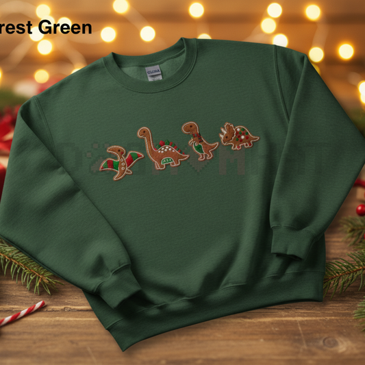 Embroidered Gingerbread Dinosaur Christmas Sweatshirt