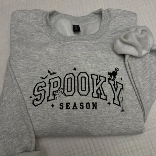 Spooky Embroidered Halloween Sweatshirt – Fall Ghost Pullover, Cozy Autumn Crewneck for Spooky Season