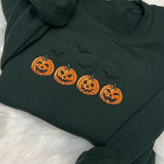 Embroidered Halloween Pumpkins Sweatshirt - Spooky Season Apparel with Bats