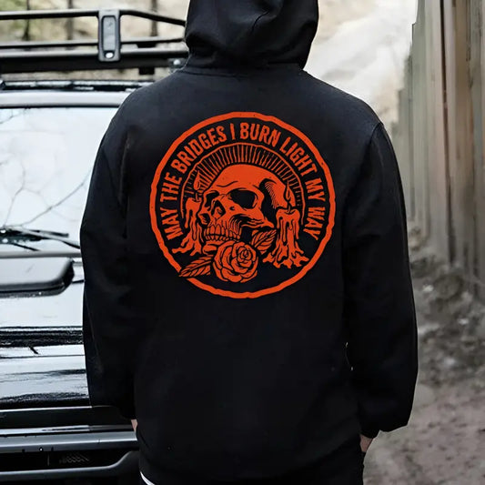 "MAY THE BRIDGES I BURN LIGHT MY WAY" Skull Print Men's Hoodie – Defiant Streetwear