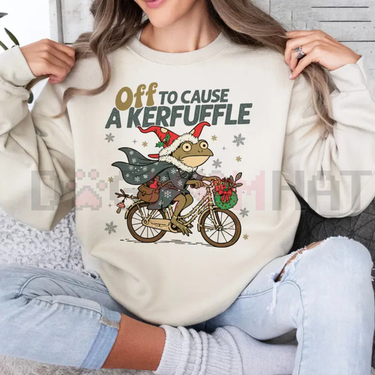 "Off to Cause a Kerfuffle" Frog Christmas Sweatshirt