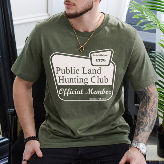 Public Land Hunting Club T-Shirt – Sage Green, Vintage Hunting Apparel, Unisex Outdoor Outfit, Gift for Hunter