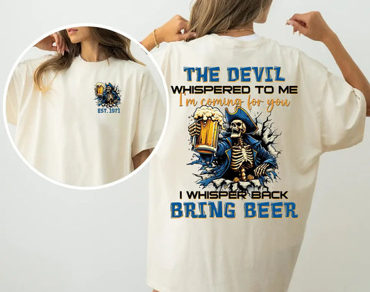Personalized "The Devil Whispered... Bring Beer" T-Shirt