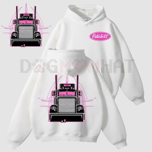 Peterbilt Pink Semi Truck 2side Hoodie – Vintage Orange Linework Semi Graphic
