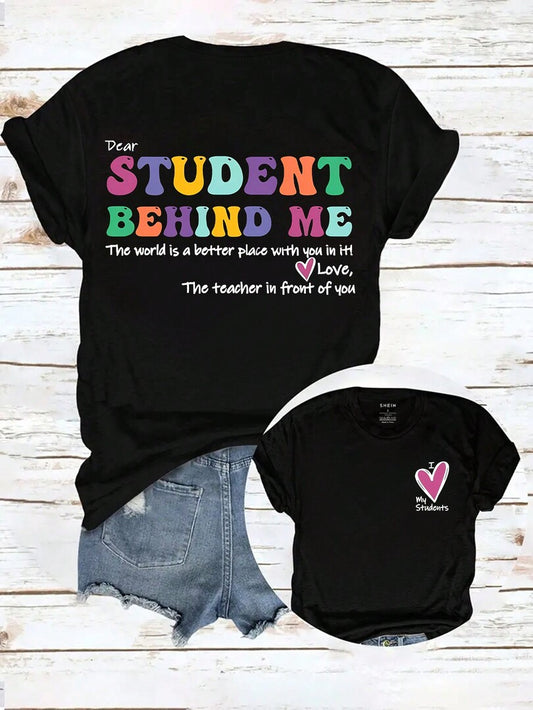 Women's Letter & Heart Print T-Shirt – Casual Crew Neck Tee, Soft Summer Top for Vacation & Daily Wear