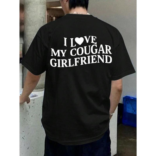 I Love My Cougar Girlfriend T-Shirt – Funny Bold Typography Tee for Men, Trendy Statement Shirt
