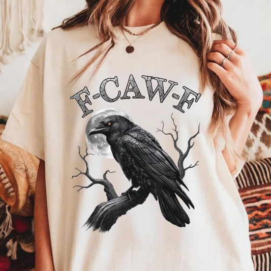 Funny "F-CAW-F" Crow T-Shirt – Black Bird Moon, Gothic Adult Humor, Vintage Streetwear, Women's Graphic TeeRegular price From $19.00Sale price From $19.00 Regular priceUnit price per