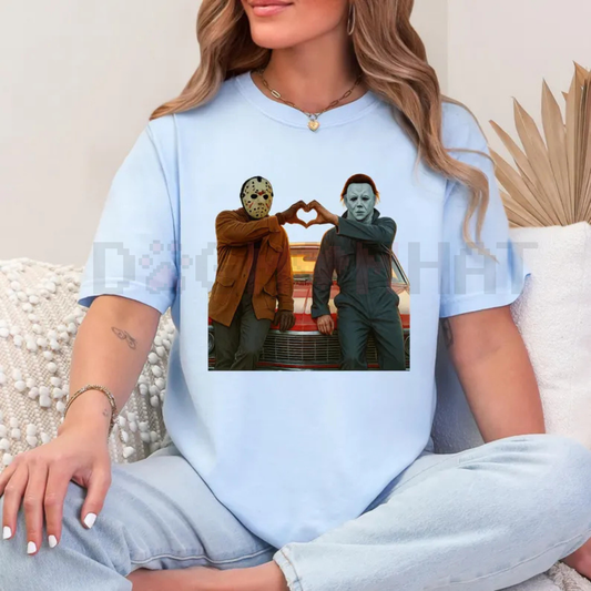 90S Vintage Retro Heart Hands Michael And Jason Halloween TShirt