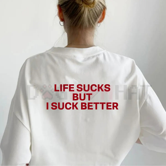 Funny Streetwear Graphic Tee – "Life Sucks But I Suck Better" Statement T-Shirt