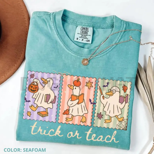 Funny Teacher Goose Halloween Comfort Colors Shirt – "Trick or Teach" Cute Ghost Tee, Elementary Teacher Humor Gift, Unisex