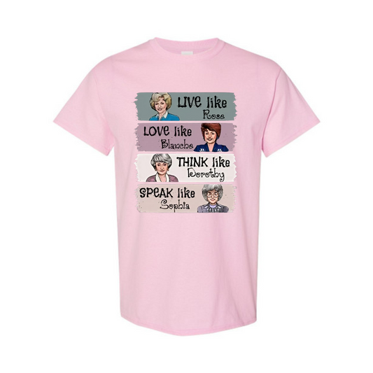 The Golden Girls Shirt – "Live Like Rose, Love Like Blanche, Think Like Dorothy, Speak Like Sophia" Tee, TV Show Fan Gift