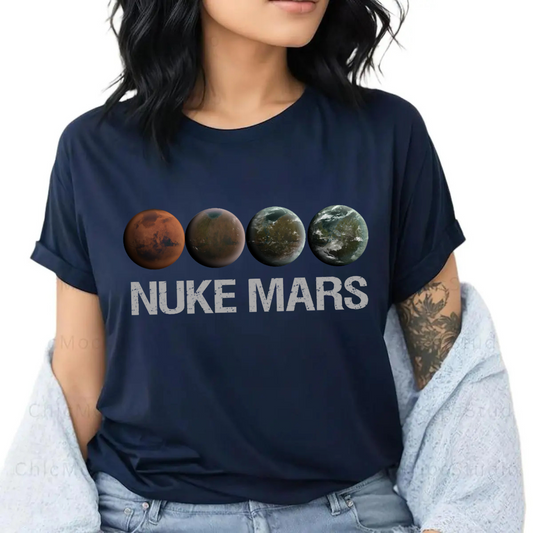 Nuke Mars T-Shirt – Elon Musk SpaceX Inspired Apparel, To The Stars Graphic Tee, Sci-Fi Space Exploration Shirt