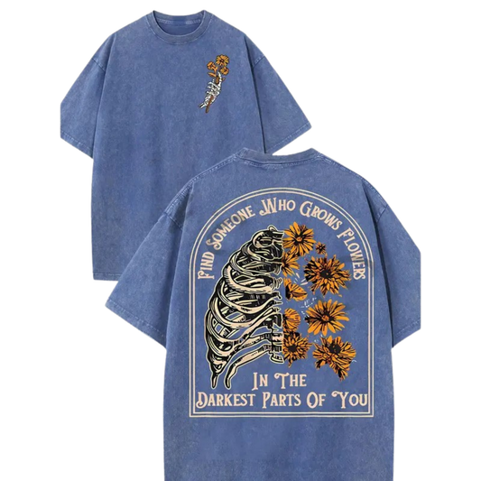 "Find Someone Who Grows Flowers" Sunflowers Washed T-Shirt