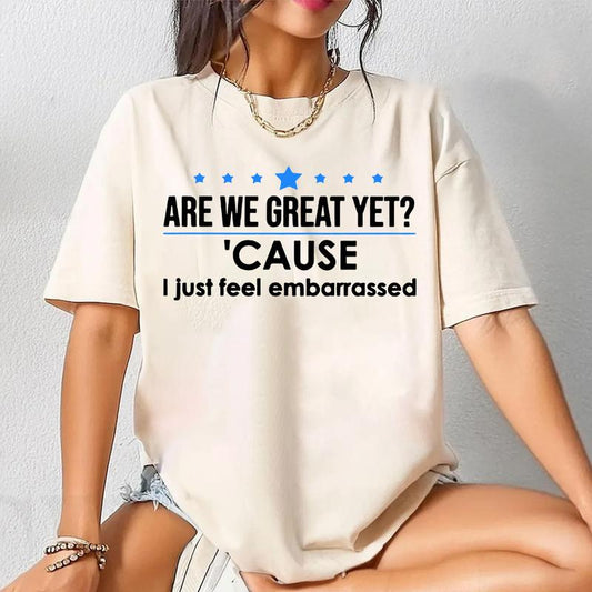 Are We Great Yet? T-Shirt – Thought-Provoking Graphic Tee, Unisex Political Humor Shirt for Men & Women