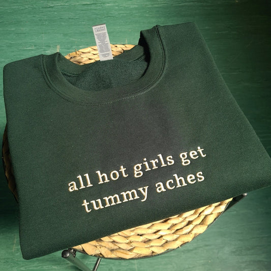 All Hot Girls Get Tummy Aches Embroidered Sweatshirt, Tummy Ache Crewneck, Gift For Girlfriend