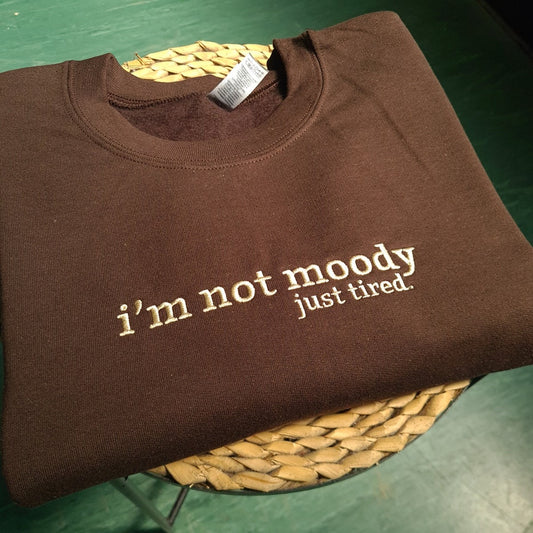 I'm Not Moody Just Tired Embroidered Sweatshirt, Funny Sweater For Him, Gift For Brother, Funny Gift For Dad