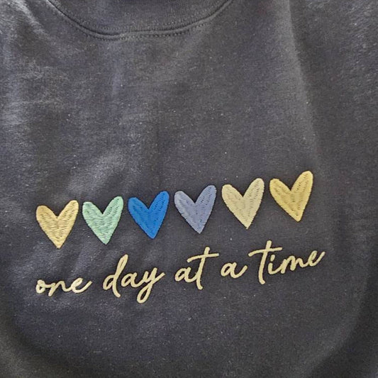 One Day at a Time Embroidered Sweatshirt, Heart Sweatshirt, Inspirational Quotes Sweatshirt, Encouragement Sweatshirt, Mental Health Aware