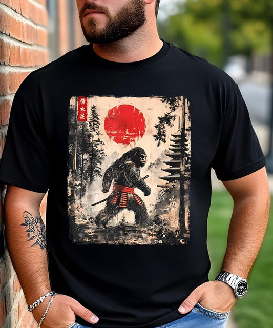 Samurai Bigfoot T-Shirt – Funny Japanese Ukiyo-e Graphic Tee, Vintage-Style Short Sleeve Shirt for Men & Women