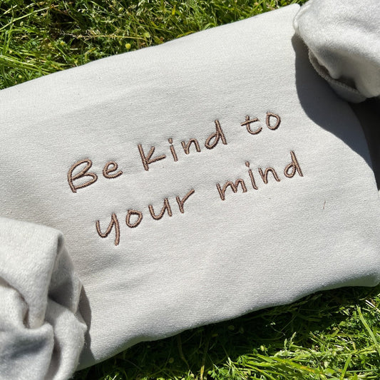 Be Kind to Your Mind Embroidered Sweatshirt, Mental Health Sweatshirt, Gift for Her or Him