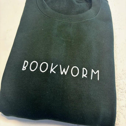 Bookworm Embroidered Sweatshirt, Bookish Hoodie, Book Club Sweater, Bookworm Crewneck