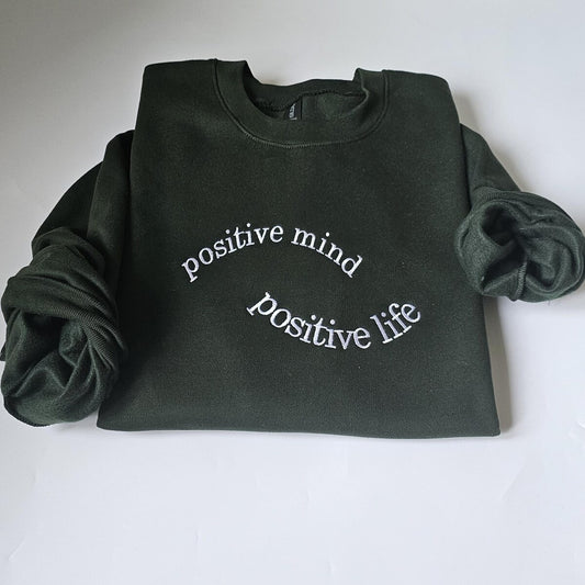 Custom Embroidered Positive mind - Positive Life Sweatshirt, Mental Health Hoodie, Positivity Encouragement Crewneck, Gift for Friend