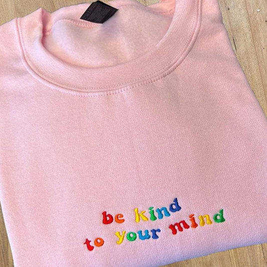 Embroidered Be Kind to Your Mind Sweatshirt, Mental Health Hoodie, Embroidered Crewneck, Colorful Positive Affirmation Sweatshirt