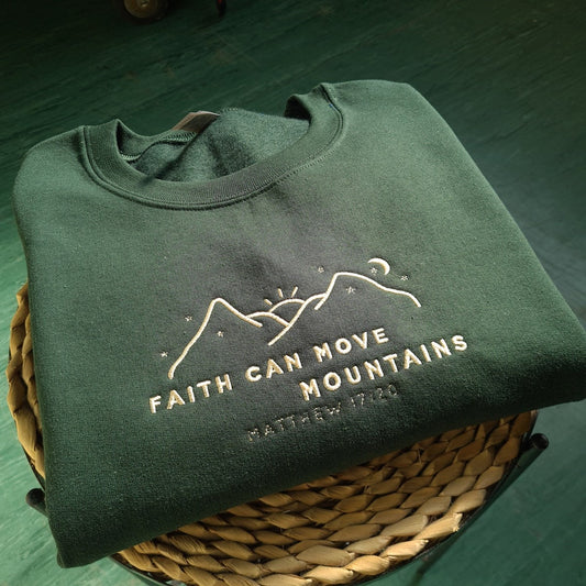 Faith Can Move Mountains Embroidered Sweatshirt, Christian Embroidered Hoodie, Christian Gift, Bible Verse Sweater, Gift for Her
