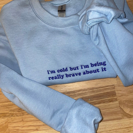 I’m Cold But I'm Being Really Brave about It Embroidered Sweatshirt - Embroidered Hoodie, Birthday Gift Ideas