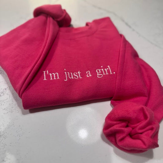 I'm Just A Girl Embroidered Sweatshirt, Gift for Girlfriend, Literally Girly Hoodie, Gift for Her