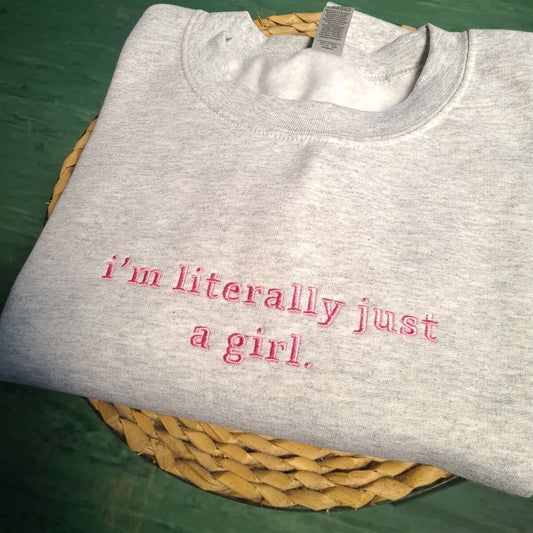 I'm Literally Just A Girl Embroidered Sweatshirt, Funny Gifts, Girly Hoodie, Gift For Girlfriend, Meme Crewneck, Gifts For Sister