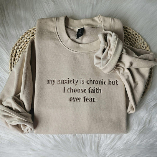 My anxiety is Chronic Embroidered Sweatshirt - Mental Health Crewneck Hoodie, Gift for Christian