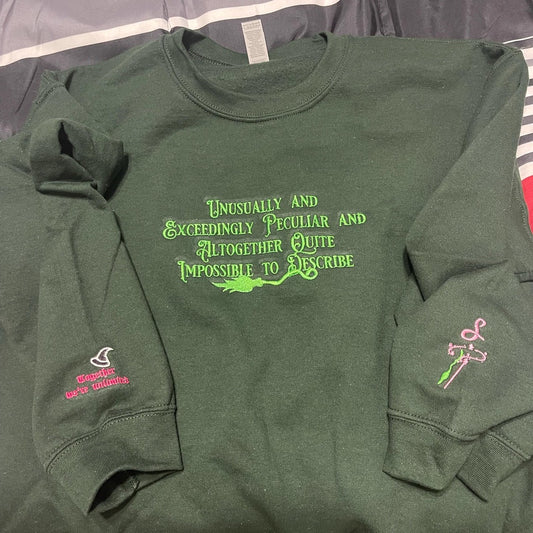 Unusually Exceedingly Peculiar Embroidered Sweatshirt & Hoodie - Defying Gravity Crewneck Wicked Musical Movie Fan Gift