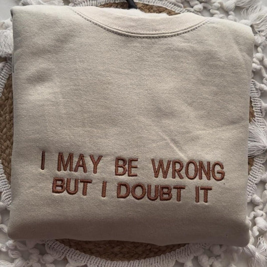 I May Be Wrong But I Doubt It Embroidered Sweatshirt - Funny Hoodie, Gift for Friends