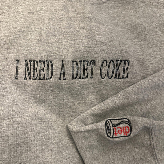 I Need A Diet Coke Embroidered Sweatshirt, Custom Diet Coke Hoodie, Vintage Coke Embroidery, Cute BFF Gift, Trendy Soda Lover Crewneck