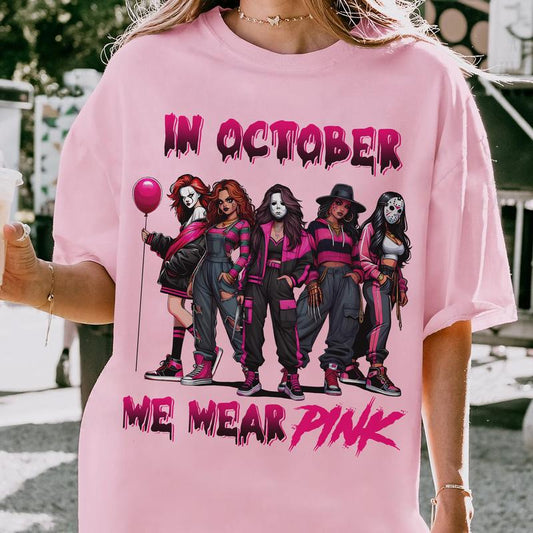 "In October We Wear Pink" Horror Halloween Breast Cancer Shirt – Support Squad Tee, Cancer Survivor ApparelRegular price From $19.00Sale price From $19.00 Regular priceUnit price per$25.0024%