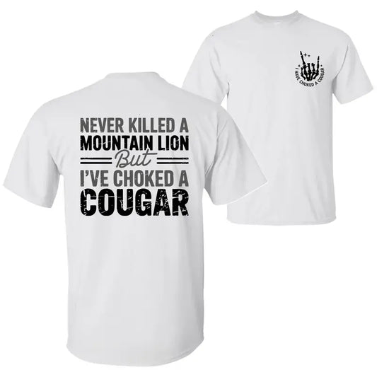 Never Killed a Mountain Lion But Choked a Cougar T-Shirt – Funny Quote Graphic Tee Unisex CottonRegular price From $25.00Sale price From $25.00 Regular priceUnit price per$31.0019%