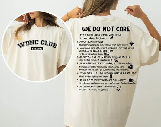 WDNC Club T-Shirt – 2-Sided “We Do Not Care” Graphic Tee, Unisex Streetwear in Full Sizes & ColorsRegular price From $25.00Sale price From $25.00 Regular priceUnit price per$31.0019%