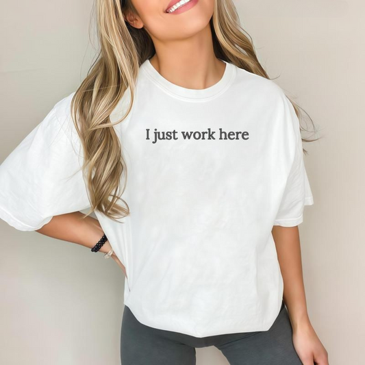 I Just Work Here Embroidered shirt - Funny Office T-Shirt, Coworker Gift