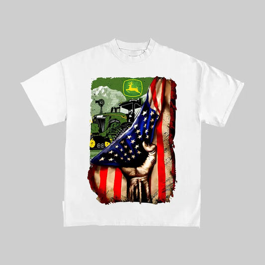 John Deere Tractor US Flag T-Shirt - American Farmer Graphic Tee